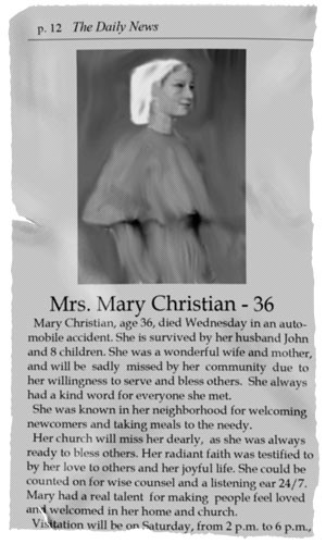 When I heard this story today for the first time, I seriously pondered how my obituary would read if people were to write out my life as they perceived it. I also realized that God is the one in charge of writing my obituary. How does He perceive me? What is His opinion of the things that I do? Does He see my life as I see it, or are there blind spots that I do not see?
